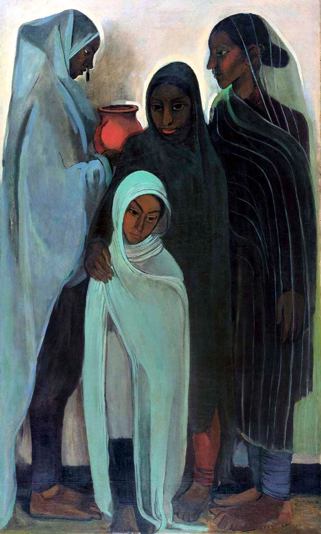 This lovely oil on canvas painting from 1935, titled “Hill Women”, is by the Indian-Hungarian artist, Amrita Sher-Gil. Painted in the Post-Impressionism style, Sher-Gil was formally trained at the École des Beaux-Arts in Paris. While in Paris, Sher-Gil was influenced by the more modern art styles of artists such as Amedeo Modigliani, Paul Gauguin, and Paul Cézanne. She painted this piece the year after she had moved back to India.