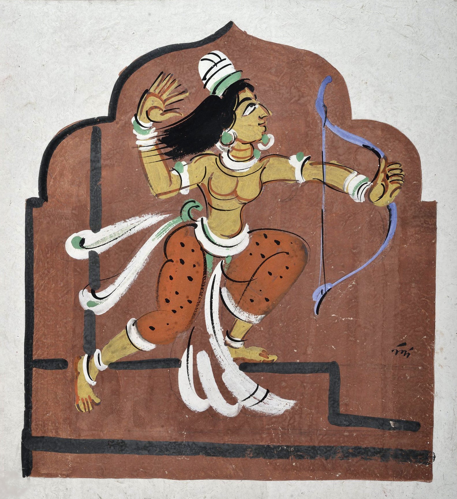 Rati With Her Bow - Nandalal Bose - Haripura Art - Bengal School Indian Painting