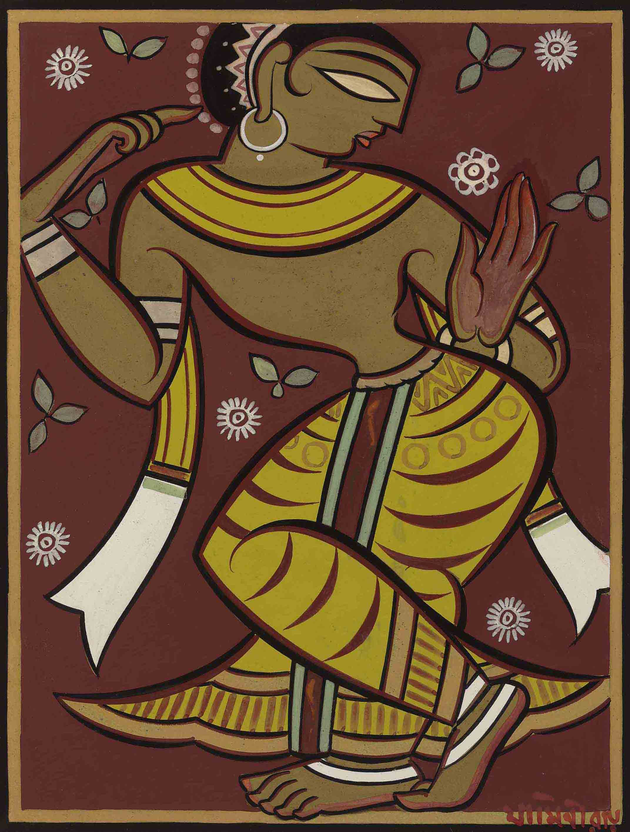 Jamini Roy was an Indian painter. He was honoured with the State award of Padma Bhushan in 1954 . He was one of the most famous pupils of Rabindranath Tagore, whose artistic originality and contribution to the emergence of modern art in India remains unquestionable. Roy used bold, sweeping brushstrokes while painting and restricted his palette to seven vibrant and earthy colours – Indian red, yellow ochre, cadmium green, vermillion, grey, blue and white. Roy's rejection of the then modern style of painting and his foray into the realm of Bengali folk paintings marked a new beginning in the history of Indian modern art.