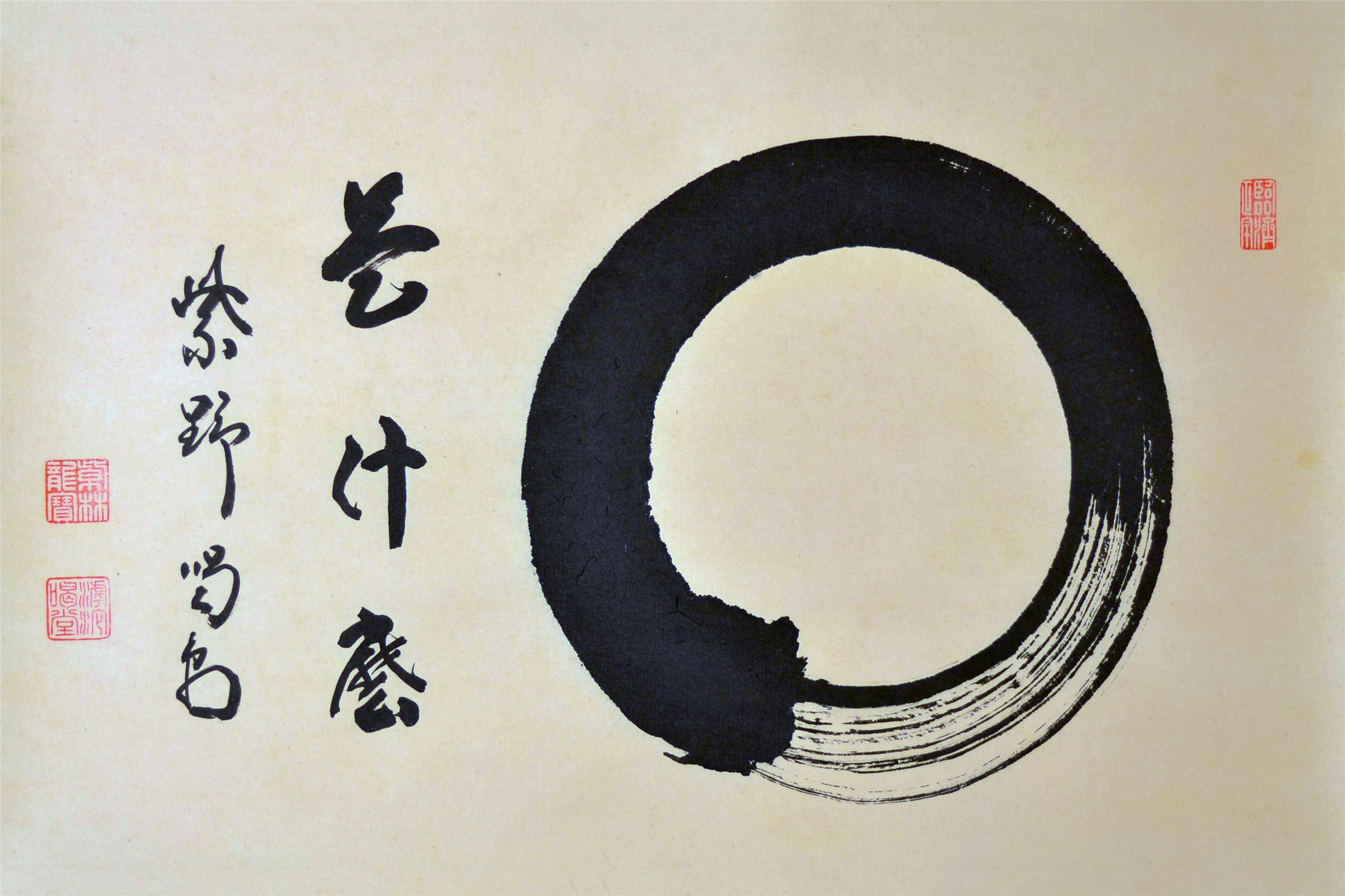 Ensō is a Japanese calligraphic ink painting—sumi-e (墨絵) intimately related to the practice of Zen. The ensō symbolizes absolute enlightenment, strength, elegance, the universe, and mu (the void). Within a circle drawn in ink, a monk can fully represent a determined spiritual moment. The circle may be open or closed. Ensō embodies the act of imprinting the artist’s essence through a single stunning circular stroke. “A circle as a vast space, which does not lack anything, nor does it have too much.”