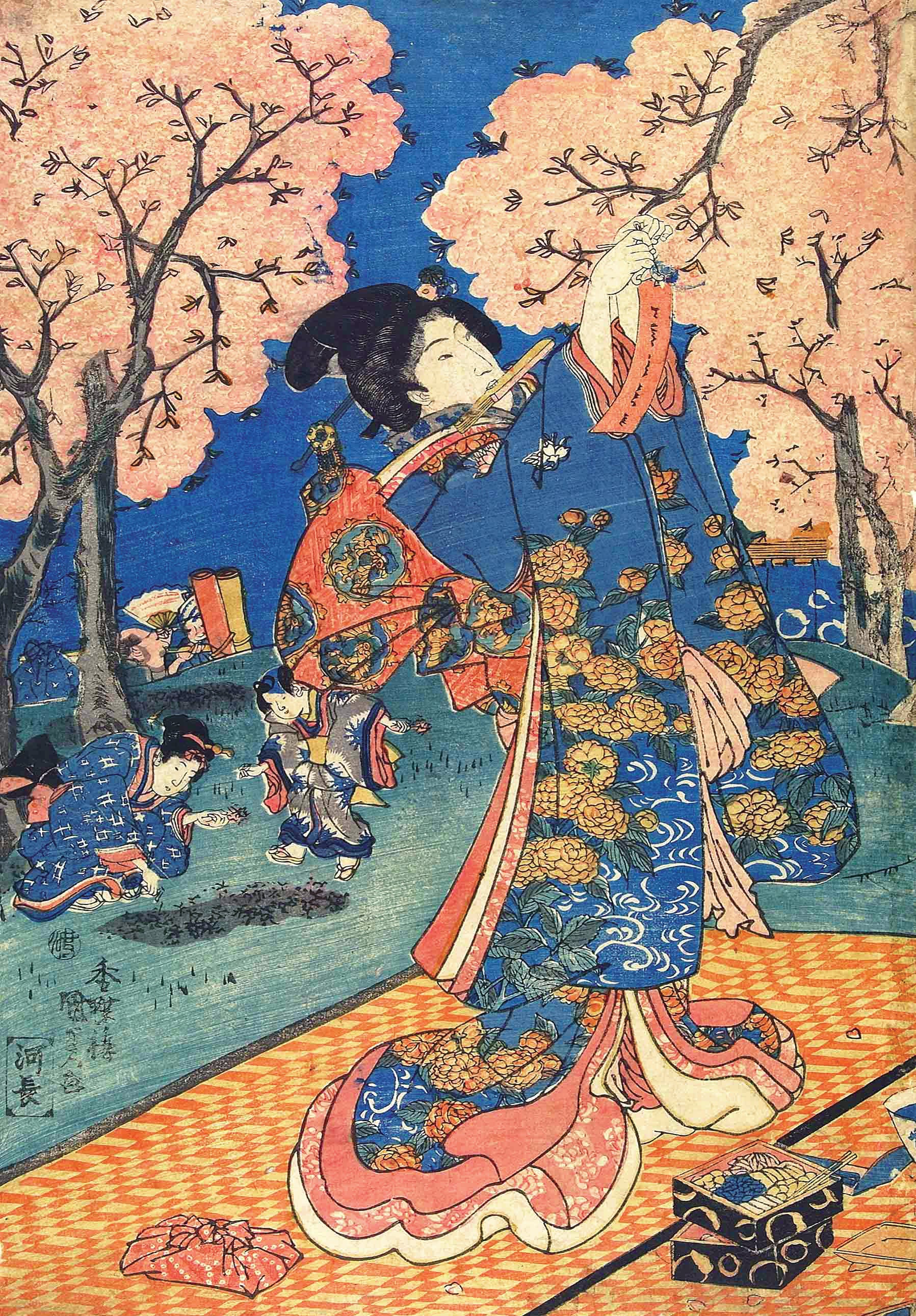 Cherry Blossom Viewing Party (Hanami) - Utagawa Kunisada I - Japanese Woodblock Print