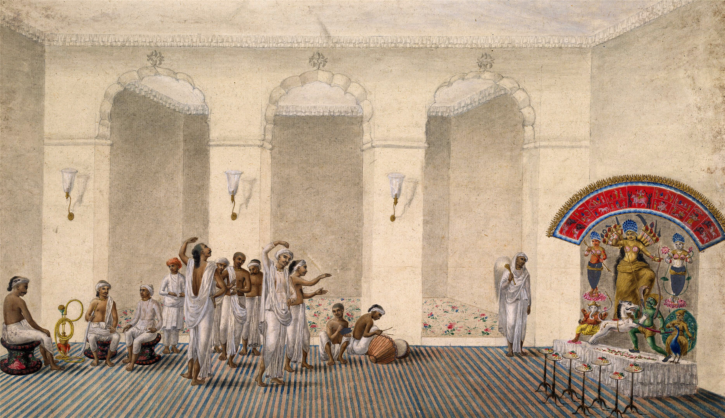 Durga Puja - Vintage 1809 Watercolour- Kolkata Photo And Painting Collection
