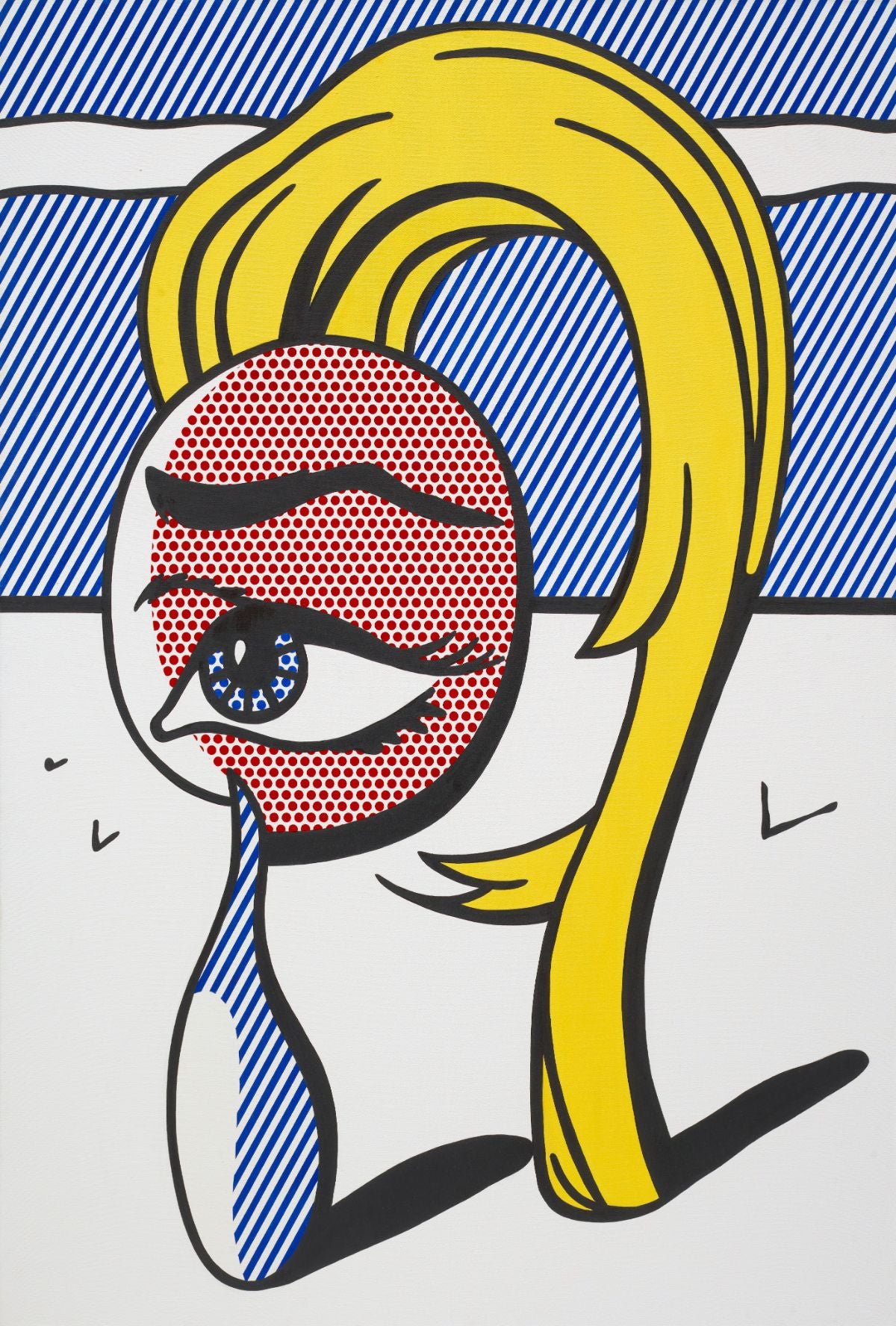 Puzzled Portrait from 1978 emerges from this important period of creativity and depicts one of Lichtenstein’s signature blondes, who has departed from the role of 1960s narrative heroine and entered into a Surrealist realm of fractured figuration and enigmatic context. Lichtenstein’s engagement with Surrealism seems a rather curious one: his work was rational and ordered, and the breaking down of form and the elasticity of meaning in Surrealism seemed anathema to the logic of Lichtenstein.