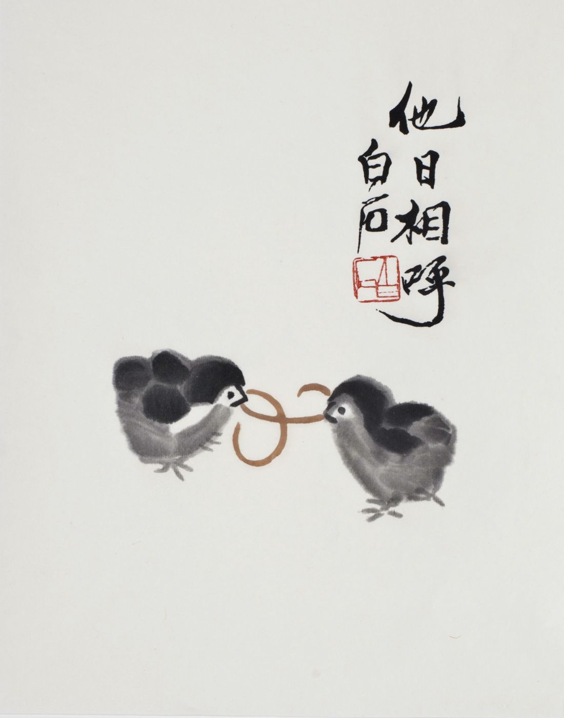 Qi Baishi - Two Chicks Fighting Over A Worm