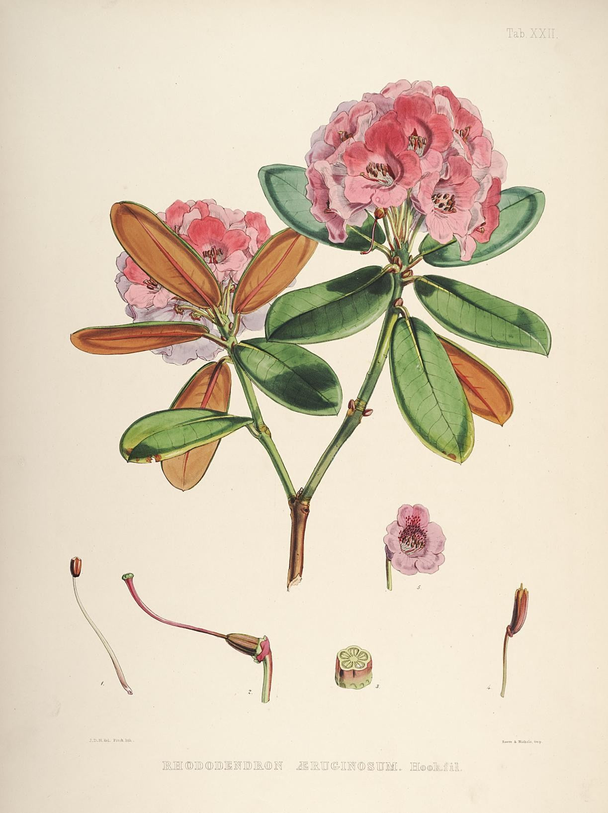 Rhododendrons of Sikkim-Himalaya 1 - Vintage Botanical Floral Illustration Art Print from 1845