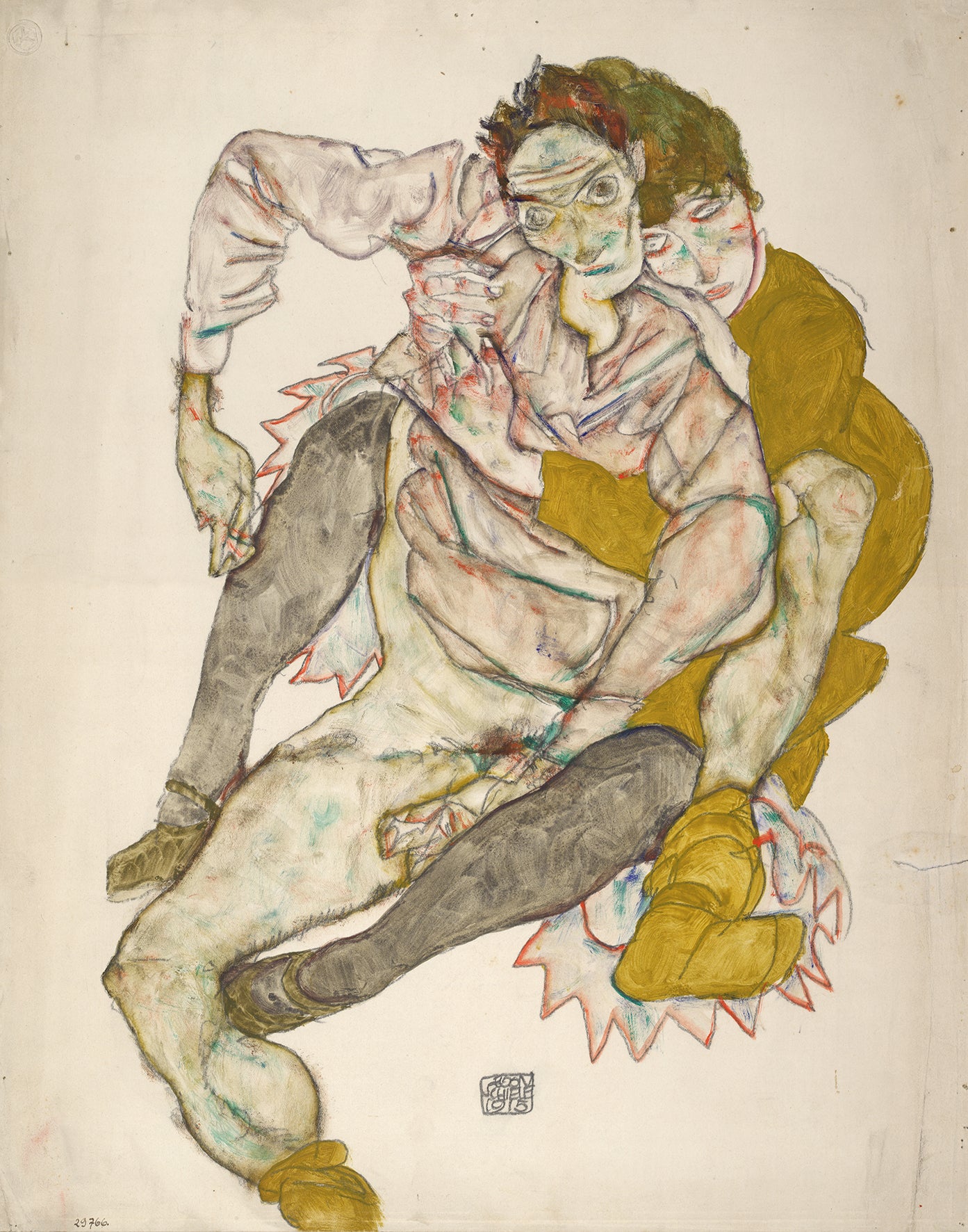 Egon Leo Adolf Ludwig Schiele was an Austrian Expressionist painter. Gustav Klimt, figurative painter of the early 20th century, was a mentor. His work is noted for its intensity and its raw sexuality, and the many self-portraits the artist produced, including nude self-portraits. With his signature graphic style, embrace of figural distortion, and bold defiance of conventional norms of beauty, Egon Schiele was one of the leading figures of Austrian Expressionism. His portraits and self-portraits, searing explorations of their sitters' psyches and sexuality, are among the most remarkable of the 20th century. The artist, who was astoundingly prolific during his brief career, is famous not only for his psychologically and erotically charged works, but for his intriguing biography: his licentious lifestyle marked by scandal, notoriety, and a tragically early death of influenza at age twenty-eight, three days after the death of his pregnant wife, and at a time when he was on the verge of the commercial success that had eluded him for much of his career.