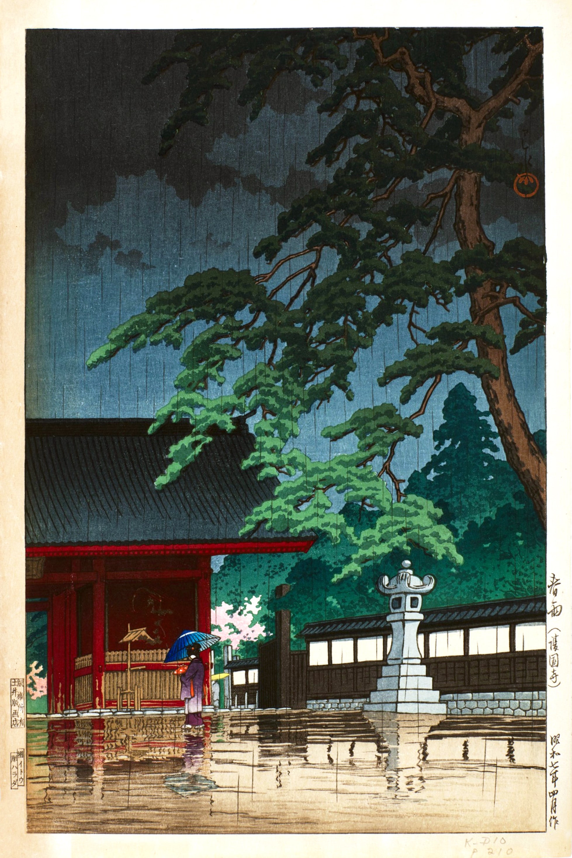 Spring Rain At The Gokoku Temple - Kawase Hasui - Japanese Woodblock Ukiyo-e Art Painting Print